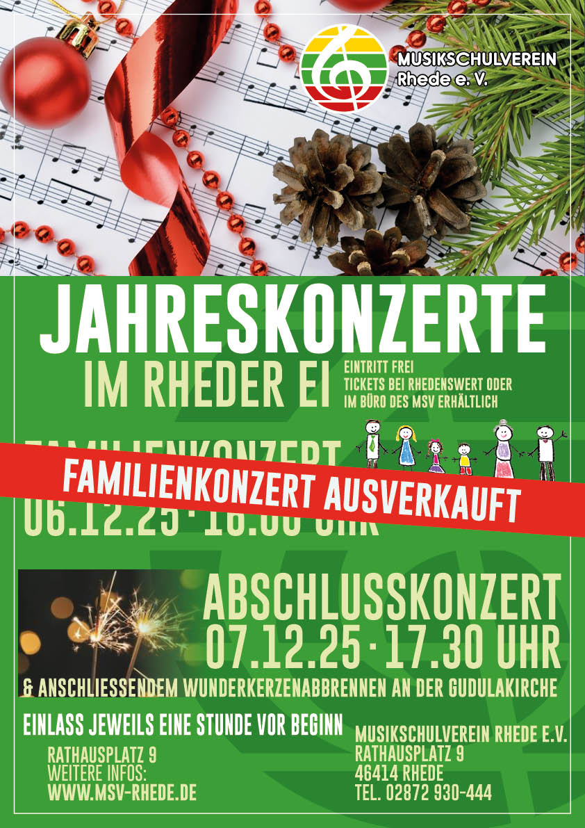 ausverkauft 06.12.2025 Familienkonzert des MSV Rhede: ab 16:00 Uhr im Rheder Ei
